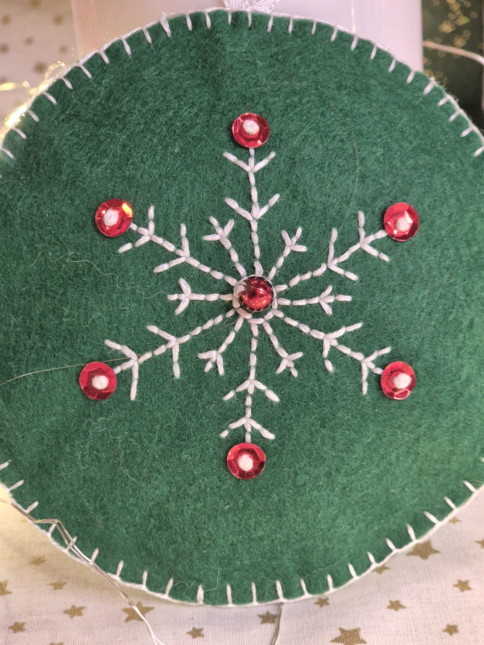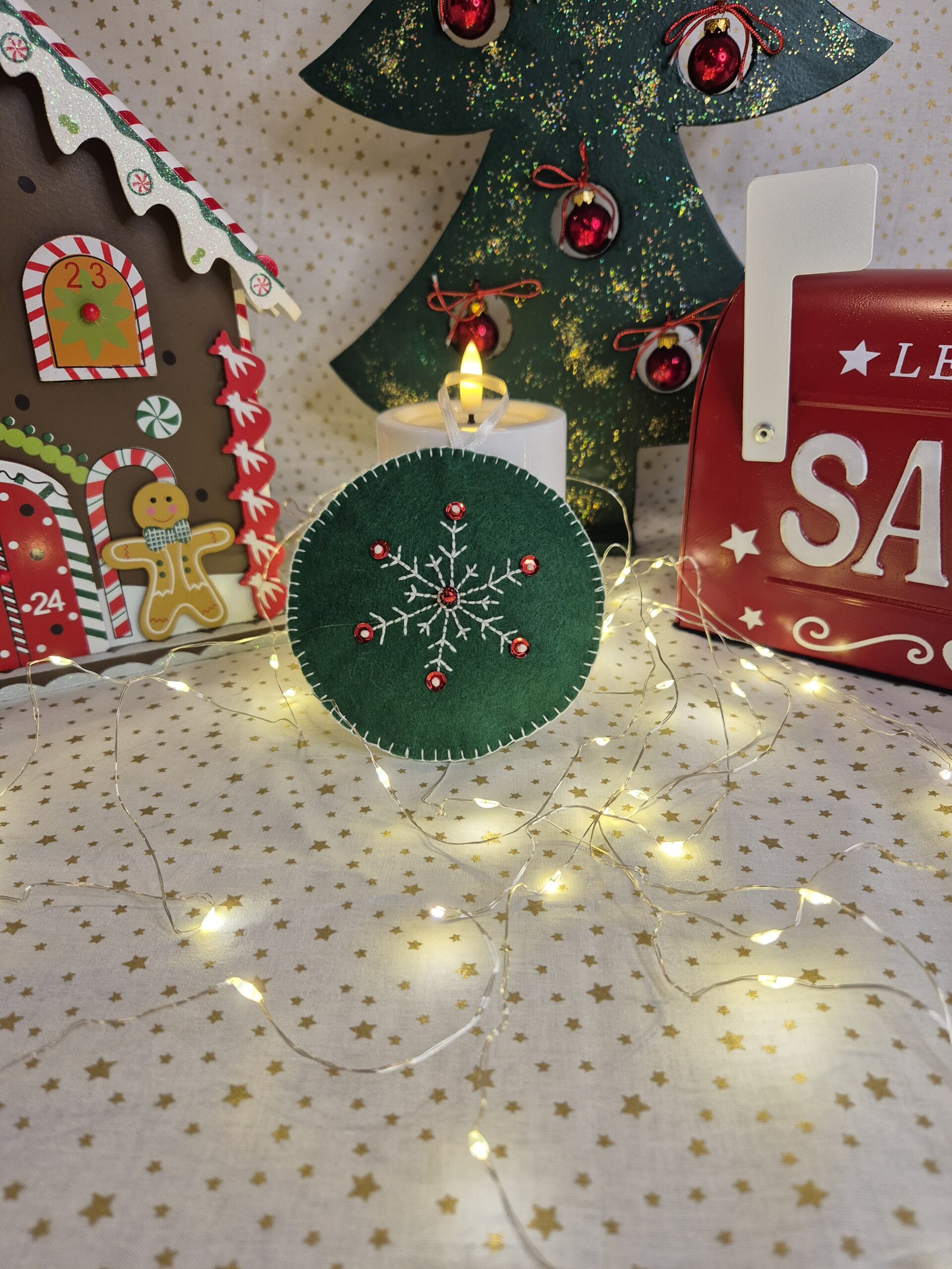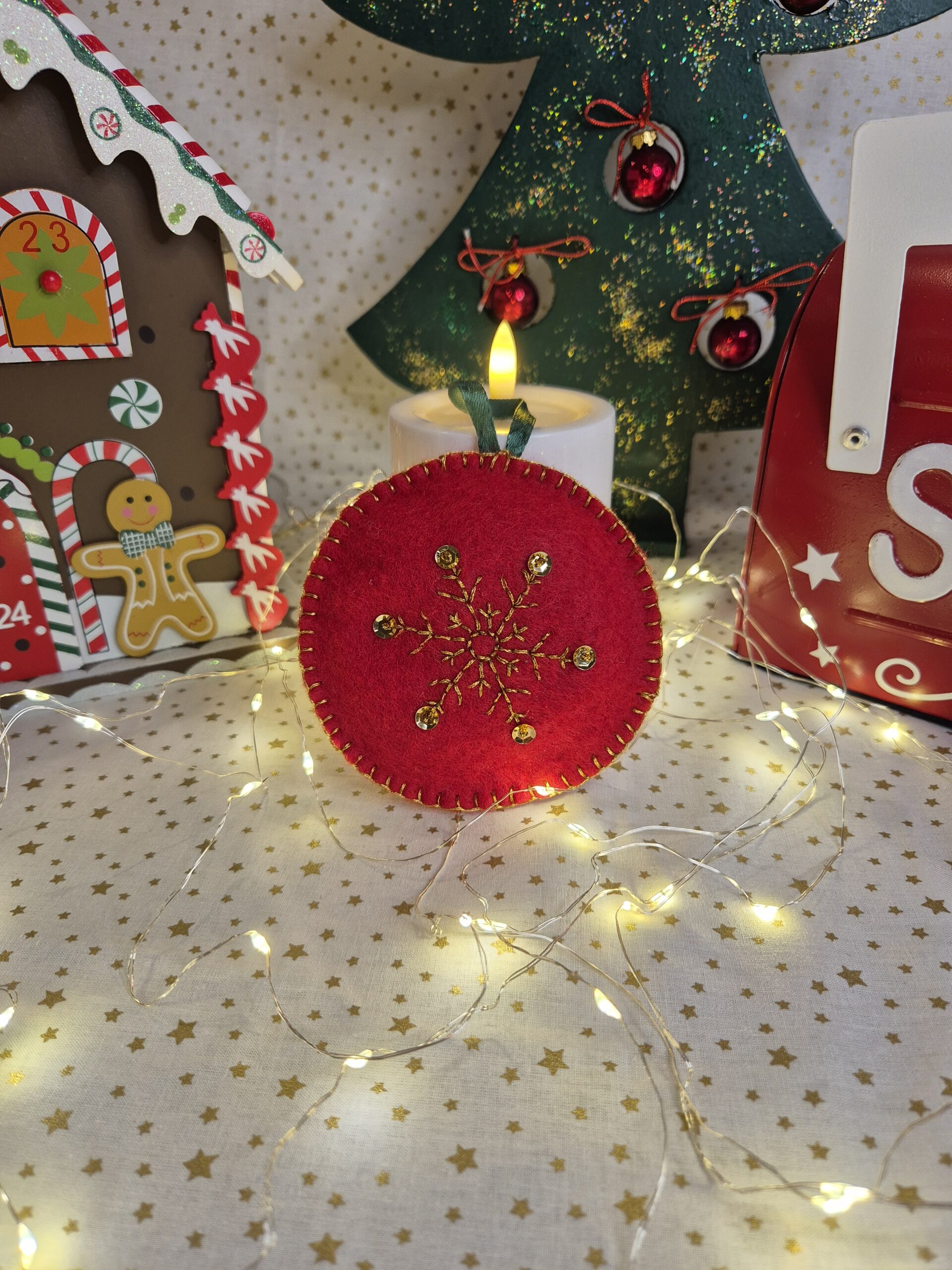 Décoration de Noël en feutrine brodée modèle boule de Noël