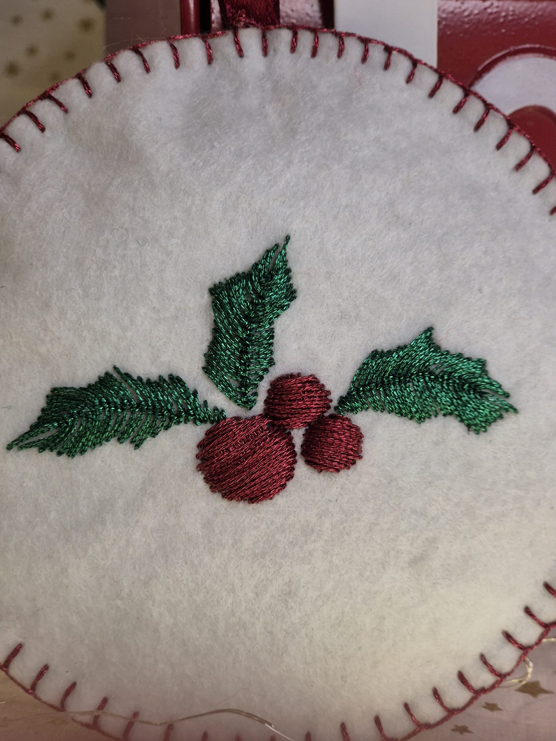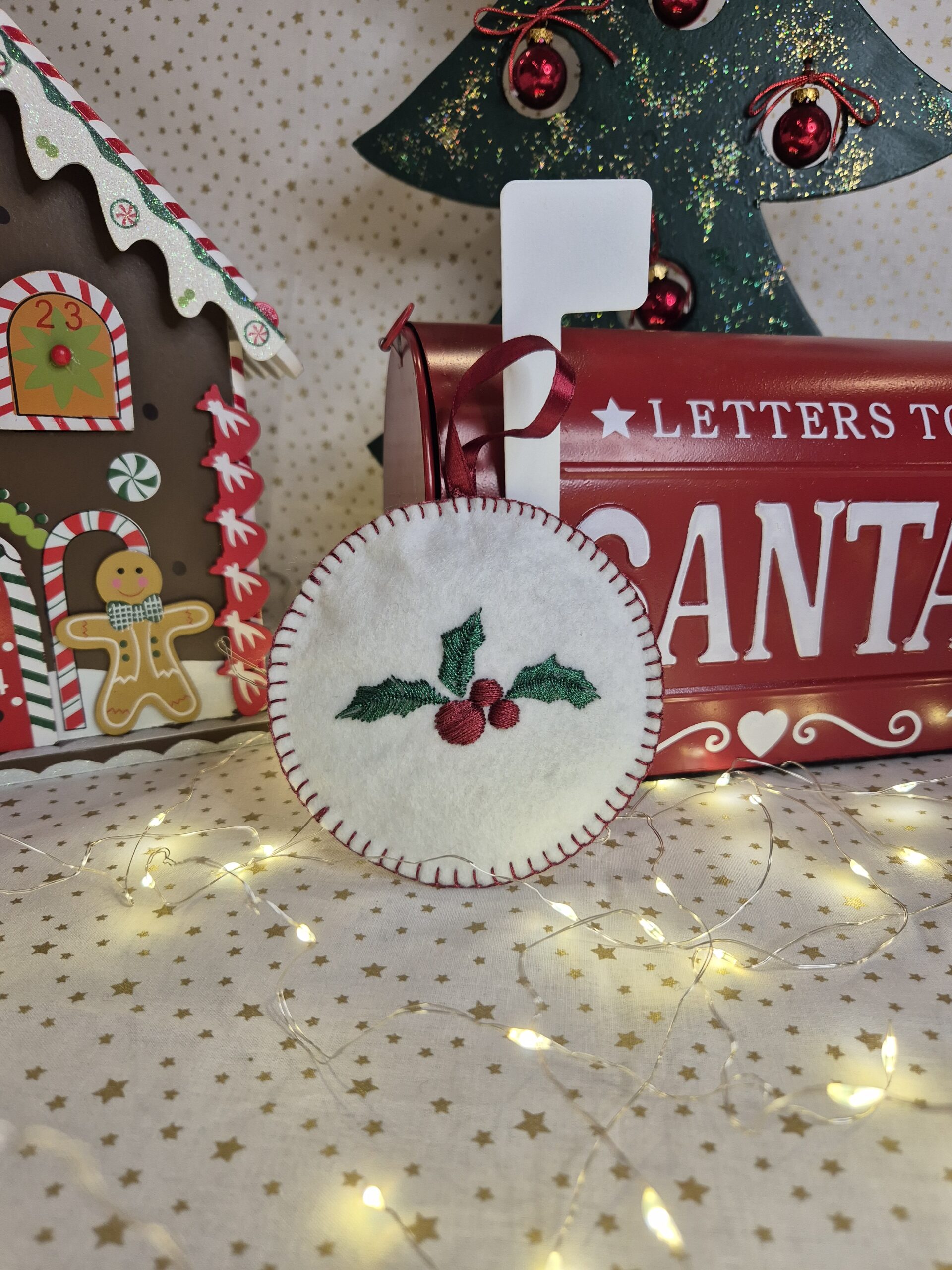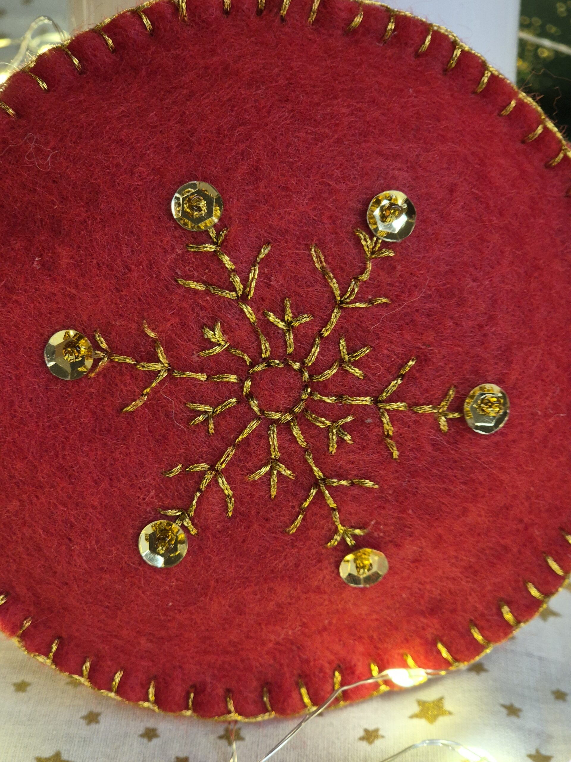 Décoration de Noël en feutrine brodée modèle boule de Noël